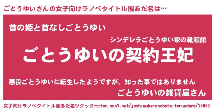 | 男性向けラノベタイトル風あだ名 | 『ごとうゆいという概念が存在しない退屈な世界 』 |