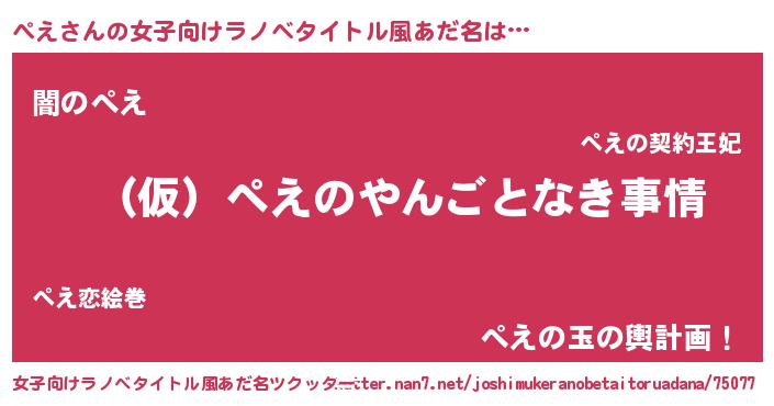 | 男性向けラノベタイトル風あだ名 | 『ぺえの憂鬱』『転生したらぺえだった件』 |