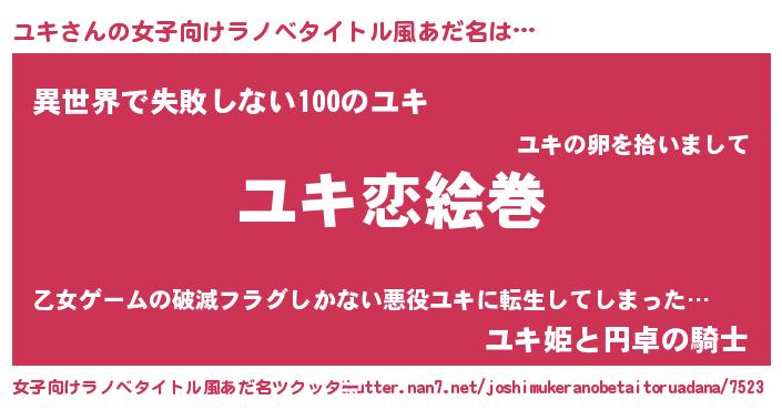 | 男性向けラノベタイトル風あだ名 | 『ノーゲーム・ノーユキ』『ユキの憂鬱』 |