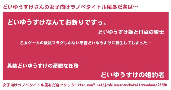 | 意味不明あだ名 | 『住所不定無職どいゆうすけ(93歳)』 |