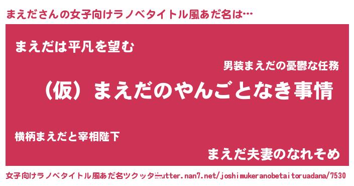 | 胡散臭い通販商品みたいなあだ名 | 『必ず成功する霊験あらたかなお札…その名も「まえだ」』 |