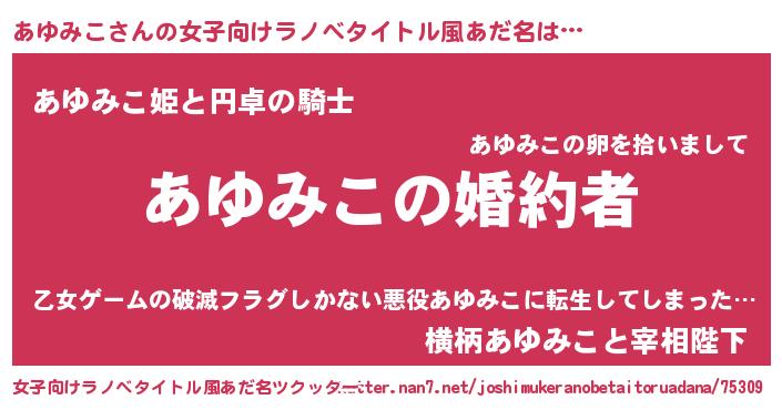 | 胡散臭い通販商品みたいなあだ名 | 『運命の人と巡り会える高級そうな絵画…その名も「あゆみこ」』 |