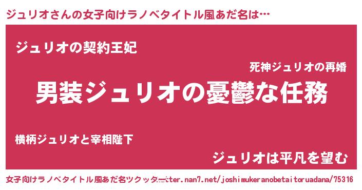 | ヒーロー風カッコイイあだ名 | 『ネオジュリオ』『幻影騎士ジュ』 |