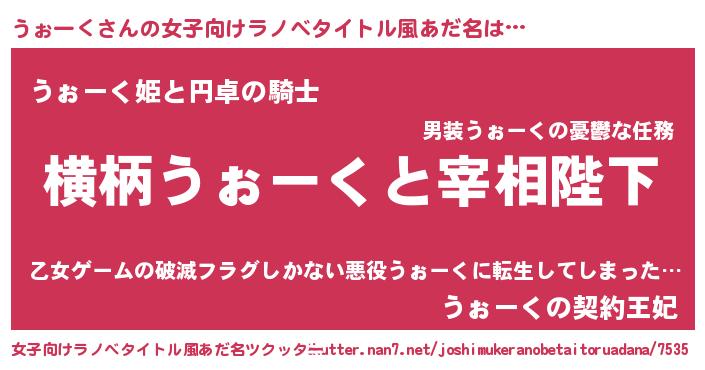 | 男性向けラノベタイトル風あだ名 | 『うぉーくに滅ぼされるだけの簡単なお仕事です』 |