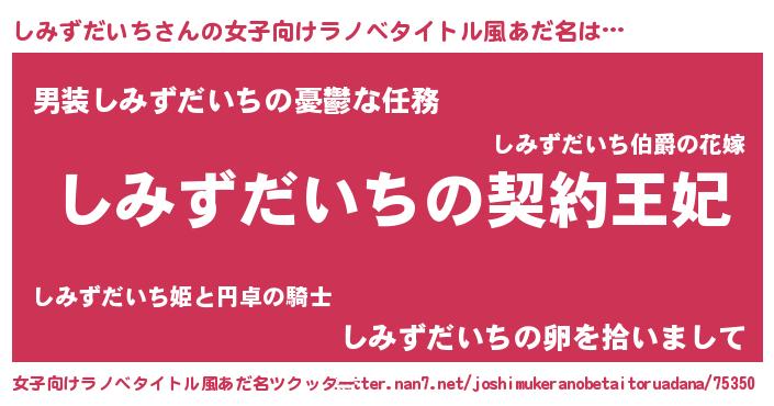 | 男性向けラノベタイトル風あだ名 | 『しみずだいちという概念が存在しない退屈な世界 』 |