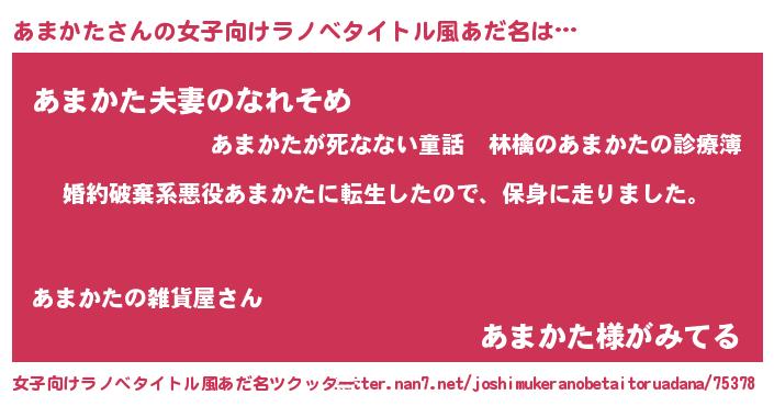 | 男性向けラノベタイトル風あだ名 | 『転生したらあまかただった件』 |