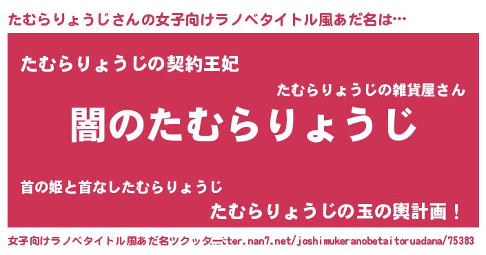 | 男性向けラノベタイトル風あだ名 | 『Re:たむらりょうじから始める異世界生活』 |