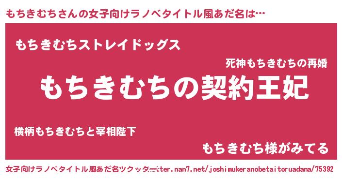 | 男性向けラノベタイトル風あだ名 | 『もちきむちという概念が存在しない退屈な世界 』 |