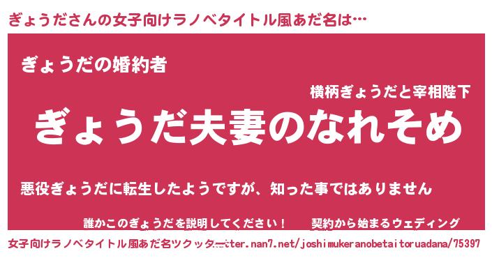 | 男性向けラノベタイトル風あだ名 | 『おまえをオタクにしてやるから、俺をぎょうだにしてくれ! 』 |