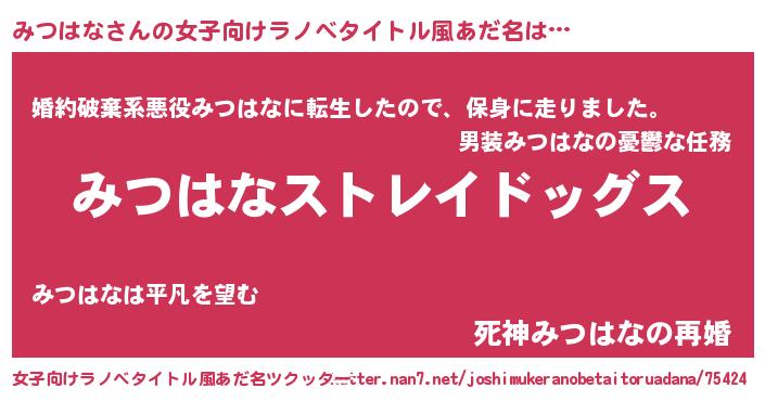 | 男性向けラノベタイトル風あだ名 | 『Re:みつはなから始める異世界生活』 |