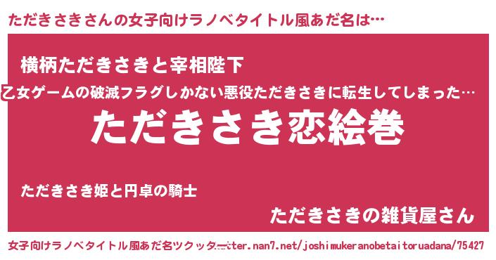 | 男性向けラノベタイトル風あだ名 | 『おまえをオタクにしてやるから、俺をただきさきにしてくれ! 』 |