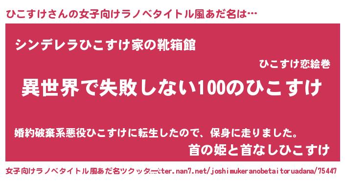 | 男性向けラノベタイトル風あだ名 | 『ひこすけという概念が存在しない退屈な世界 』 |
