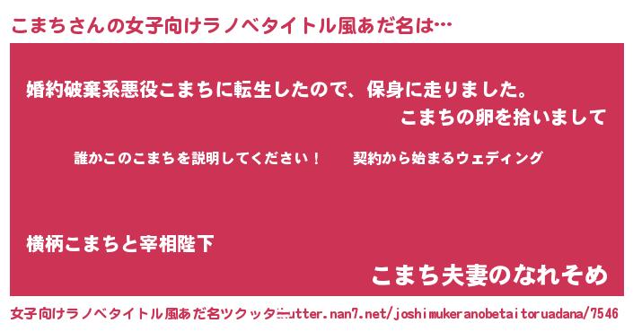 | 男性向けラノベタイトル風あだ名 | 『コマチアートオンライン』 |