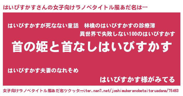 | 男性向けラノベタイトル風あだ名 | 『はたらくはいびすかすさま!』 |