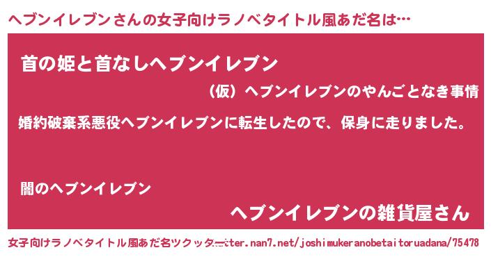 | 男性向けラノベタイトル風あだ名 | 『ヘブンイレブンスレイヤー』 |