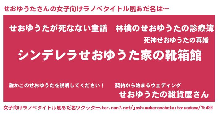 | 意味不明あだ名 | 『住所不定無職せおゆうた(91歳)』 |
