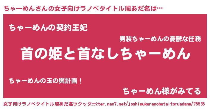| 料理風あだ名 | 『栗とちゃーめんのマフィン』 |