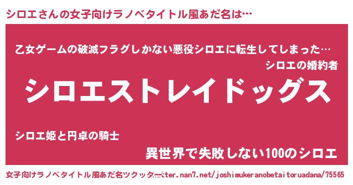 | 意味不明あだ名 | 『自称シロエ』『住所不定無職シロエ(47歳)』 |