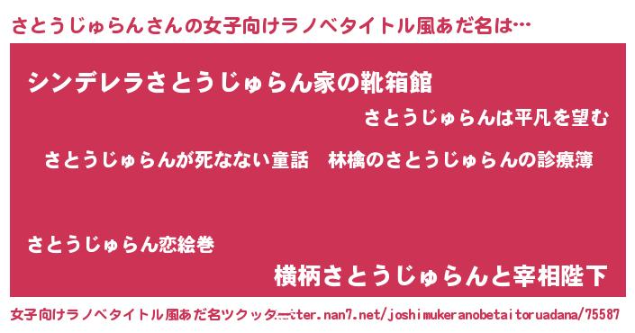 | 胡散臭い通販商品みたいなあだ名 | 『ハリウッド女優が絶賛した100年もののヴィンテージワイン…その名も「さとうじゅらん」』 |