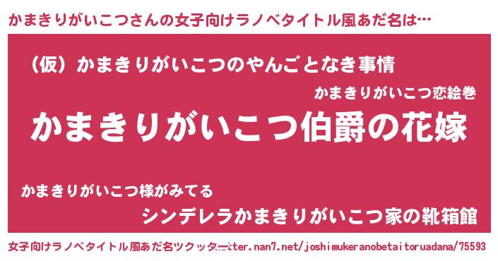 | 男性向けラノベタイトル風あだ名 | 『やはりかまきりがいこつの青春ラブコメはまちがっている 』 |