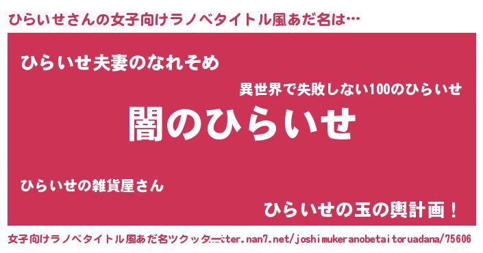 | 男性向けラノベタイトル風あだ名 | 『Re:ひらいせから始める異世界生活』 |