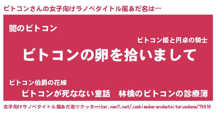 | ヘコむあだ名 | 『ビトお』『ビトもー』『なまこ酢』 |