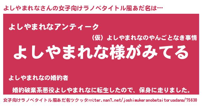 | 男性向けラノベタイトル風あだ名 | 『よしやまれなの嫁は女の子じゃないと思った?』 |