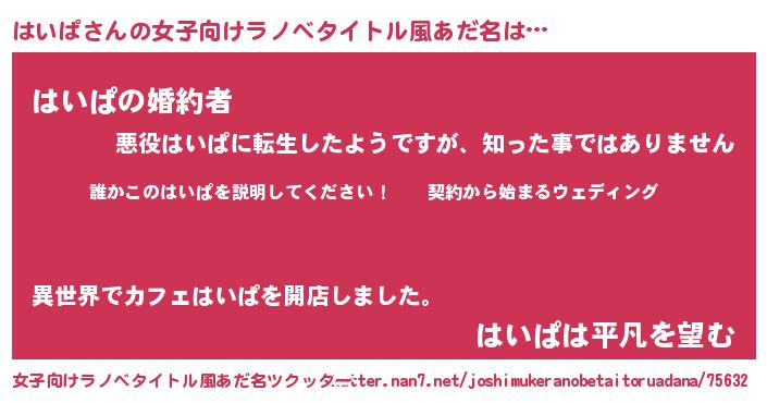 | 胡散臭い通販商品みたいなあだ名 | 『億万長者になれるブレスレット…その名も「はいぱ」』 |