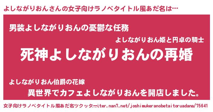 | ヘコむあだ名 | 『よしながりおん(遠い目)』『よしもー』 |