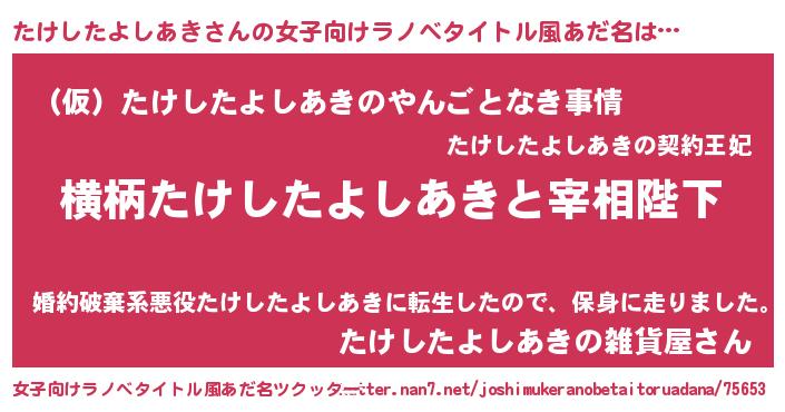 | 男性向けラノベタイトル風あだ名 | 『たけしたよしあきに滅ぼされるだけの簡単なお仕事です』 |