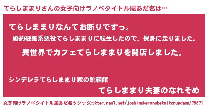 | 男性向けラノベタイトル風あだ名 | 『誰もが恐れるあのてらしままりが、ぼくの専属メイドになるようです。』 |