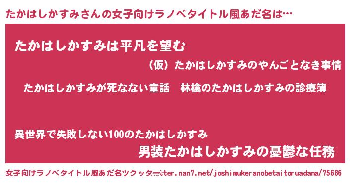 | 男性向けラノベタイトル風あだ名 | 『魔弾の王とたかはしかすみ』 |