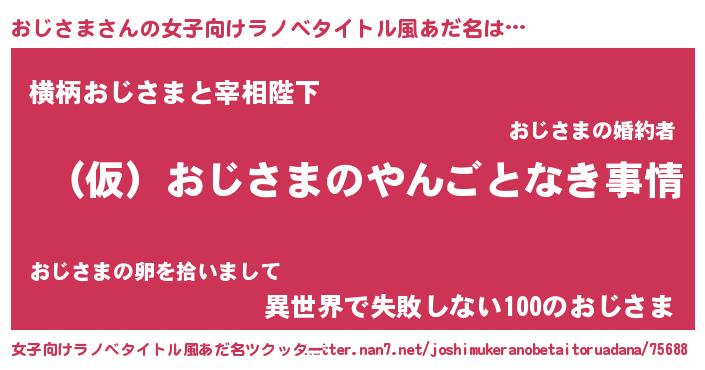 | 男性向けラノベタイトル風あだ名 | 『おじさまの憂鬱』 |