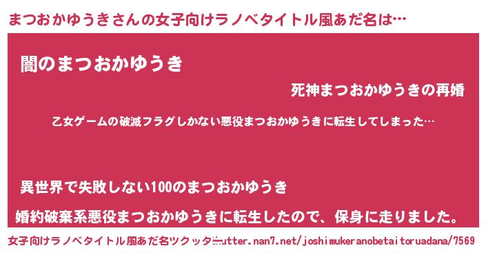 | 男性向けラノベタイトル風あだ名 | 『この素晴らしい世界にまつおかゆうきを!』 |