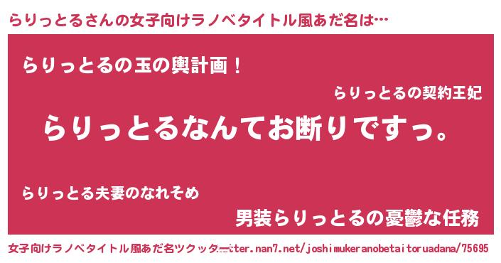 | 意味不明あだ名 | 『自称らりっとる』『ニラ科らりっとる属』 |