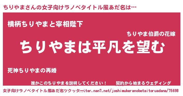 | 男性向けラノベタイトル風あだ名 | 『ダンジョンにちりやまを求めるのは間違っているだろうか』 |