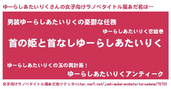 | 意味不明あだ名 | 『自称ゆーらしあたいりく』 |