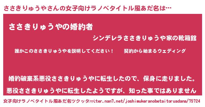 | 男性向けラノベタイトル風あだ名 | 『ササキリュウヤアートオンライン』 |