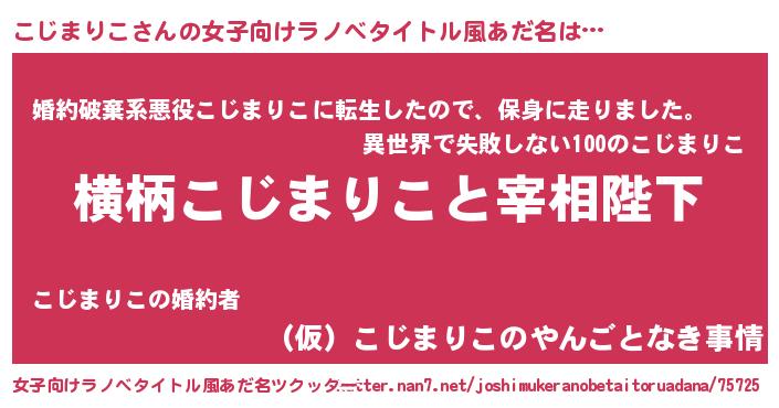 | 男性向けラノベタイトル風あだ名 | 『こじまりこに滅ぼされるだけの簡単なお仕事です』 |