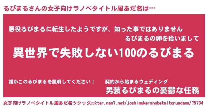 | 胡散臭い通販商品みたいなあだ名 | 『絶対に幸福をもたらす健康食品…その名も「るびまる」』 |