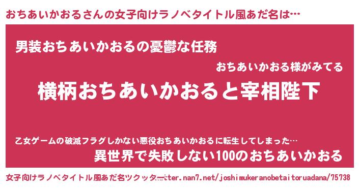 | 男性向けラノベタイトル風あだ名 | 『おちあいかおるに滅ぼされるだけの簡単なお仕事です』 |