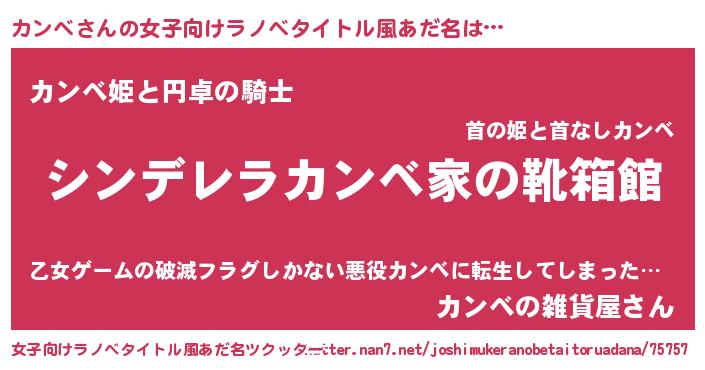 | 男性向けラノベタイトル風あだ名 | 『緋弾のカンベ』『カンベの憂鬱』 |