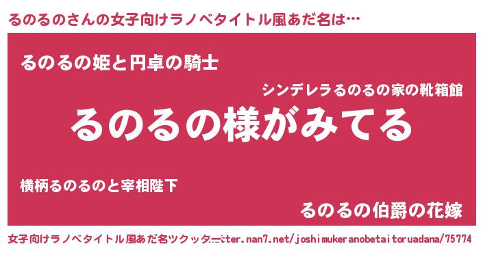 | 男性向けラノベタイトル風あだ名 | 『るのるのの嫁は女の子じゃないと思った?』 |