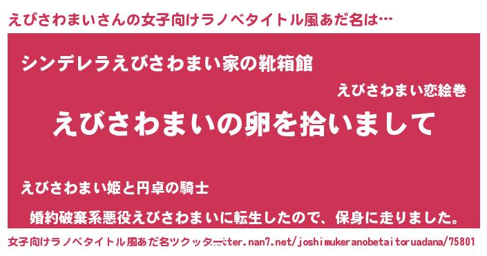 | 男性向けラノベタイトル風あだ名 | 『えびさわまいの嫁は女の子じゃないと思った?』 |
