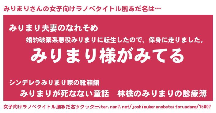 | 意味不明あだ名 | 『とにかく怪しいみりまり』 |