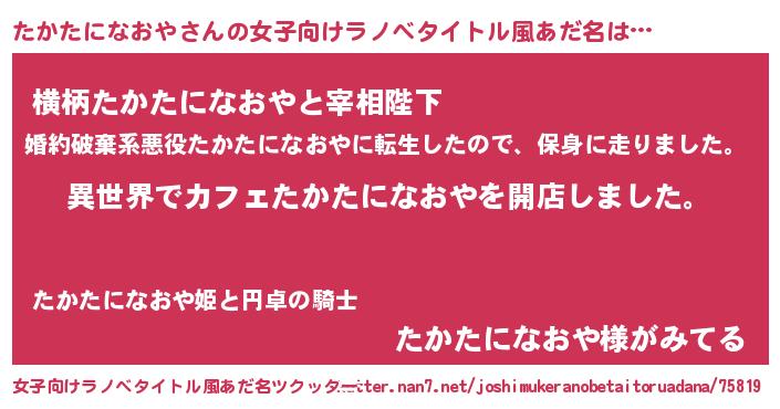 | 男性向けラノベタイトル風あだ名 | 『誰もが恐れるあのたかたになおやが、ぼくの専属メイドになるようです。』 |