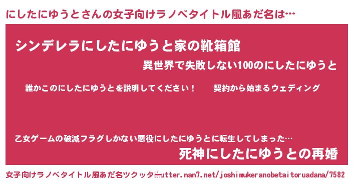 | 胡散臭い通販商品みたいなあだ名 | 『億万長者になれる水晶球…その名も「にしたにゆうと」』 |
