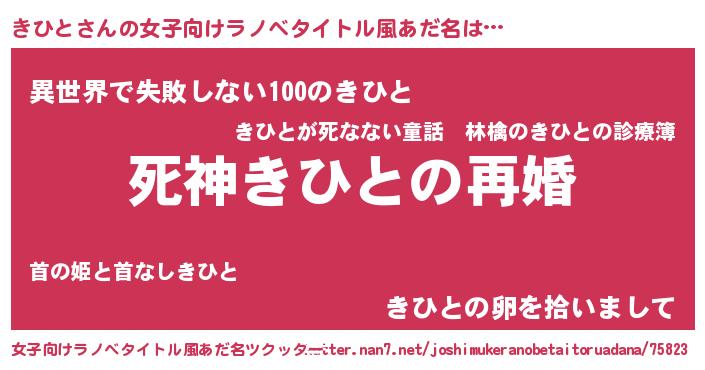 | 男性向けラノベタイトル風あだ名 | 『ノーゲーム・ノーキヒト』 |