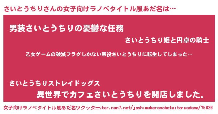 | 意味不明あだ名 | 『住所不定無職さいとうちり(86歳)』 |