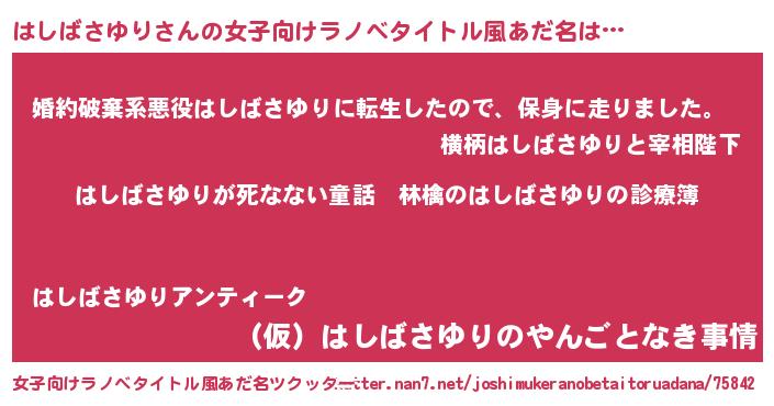| 男性向けラノベタイトル風あだ名 | 『魔弾の王とはしばさゆり』 |
